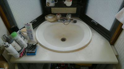 | 商品仕様 | 洗面器:LIXIL オーバーカウンター式 はめ込みだ円形洗面器 (カラー:ピュアホワイト) 水栓:LIXIL 吐水口引出式シングルレバー混合水栓 eモダン(エコハンドル) (品番:LF-E345SYC) カウンター:アイカ 耐水集成カウンター HBA型 特注品 |